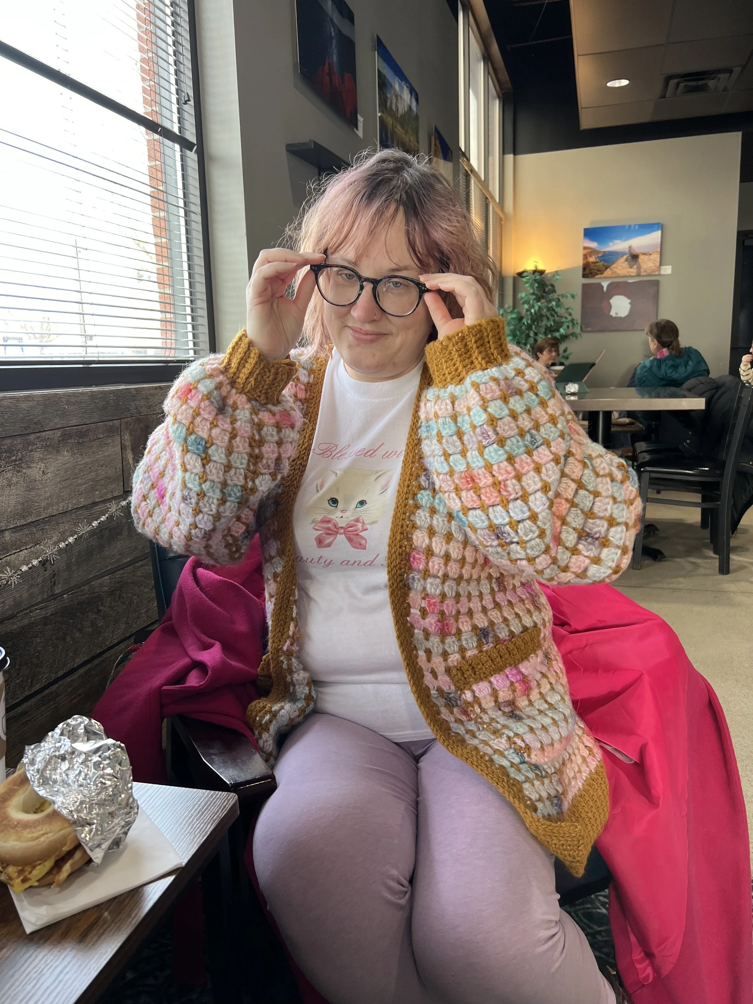 I enjoy crocheting, reading romance novels, putting together Lego sets, writing, watching movies, and wandering around stores to look for interesting tchotchkes.